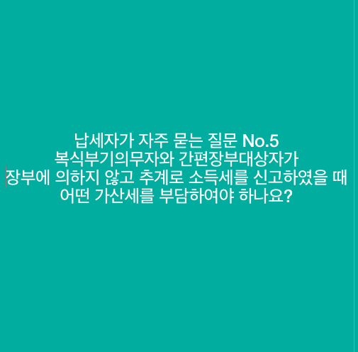 간편장부대상자(소규모사업자* 제외)가 기준경비율 또는 단순경비율로 추계신고한 경우에는 해당 산출세액의 20%장부의 기록·보관 불성실 가산세로 부과합니다.